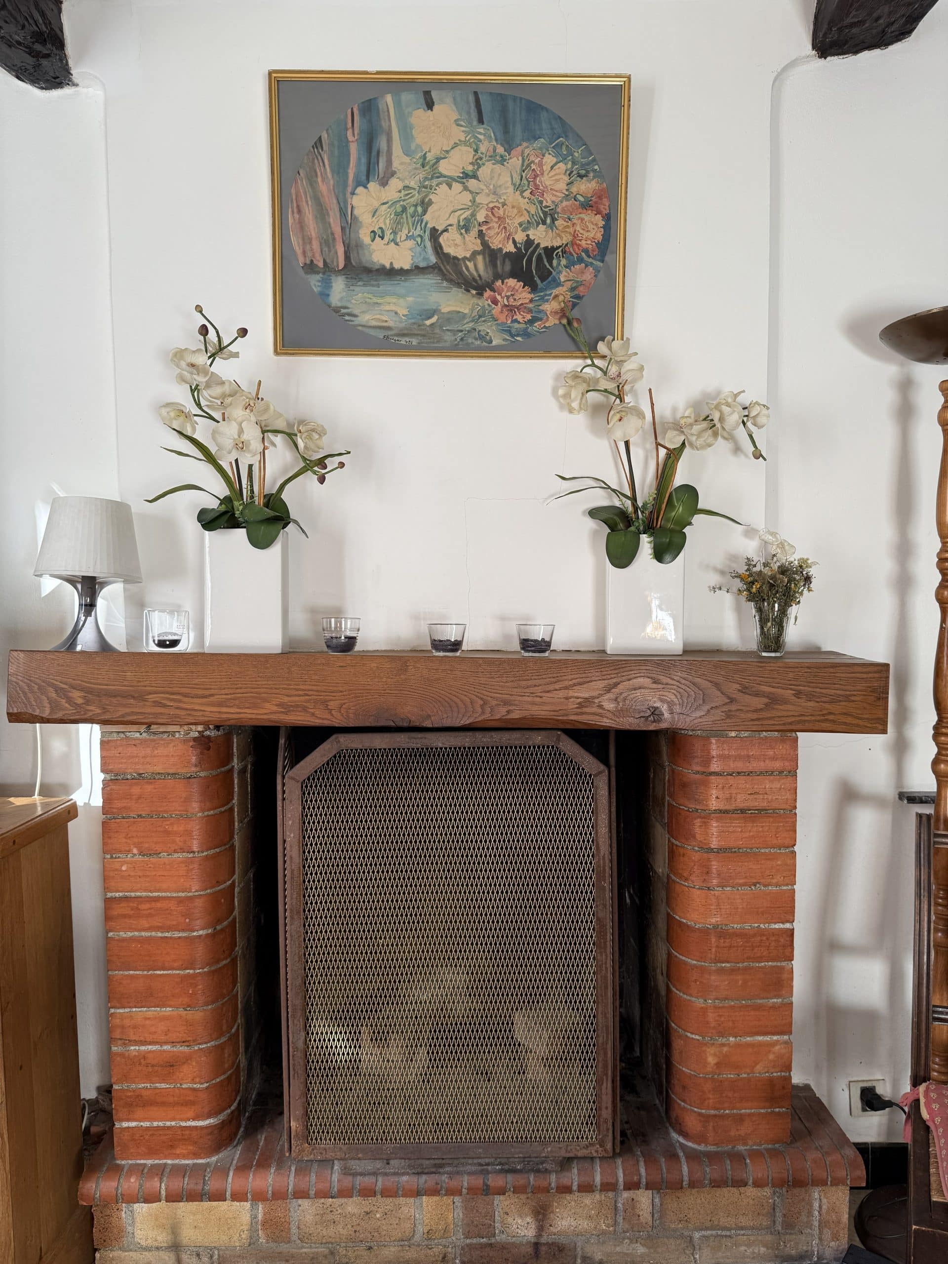 Salon : cheminée, TV, livres, jeux