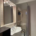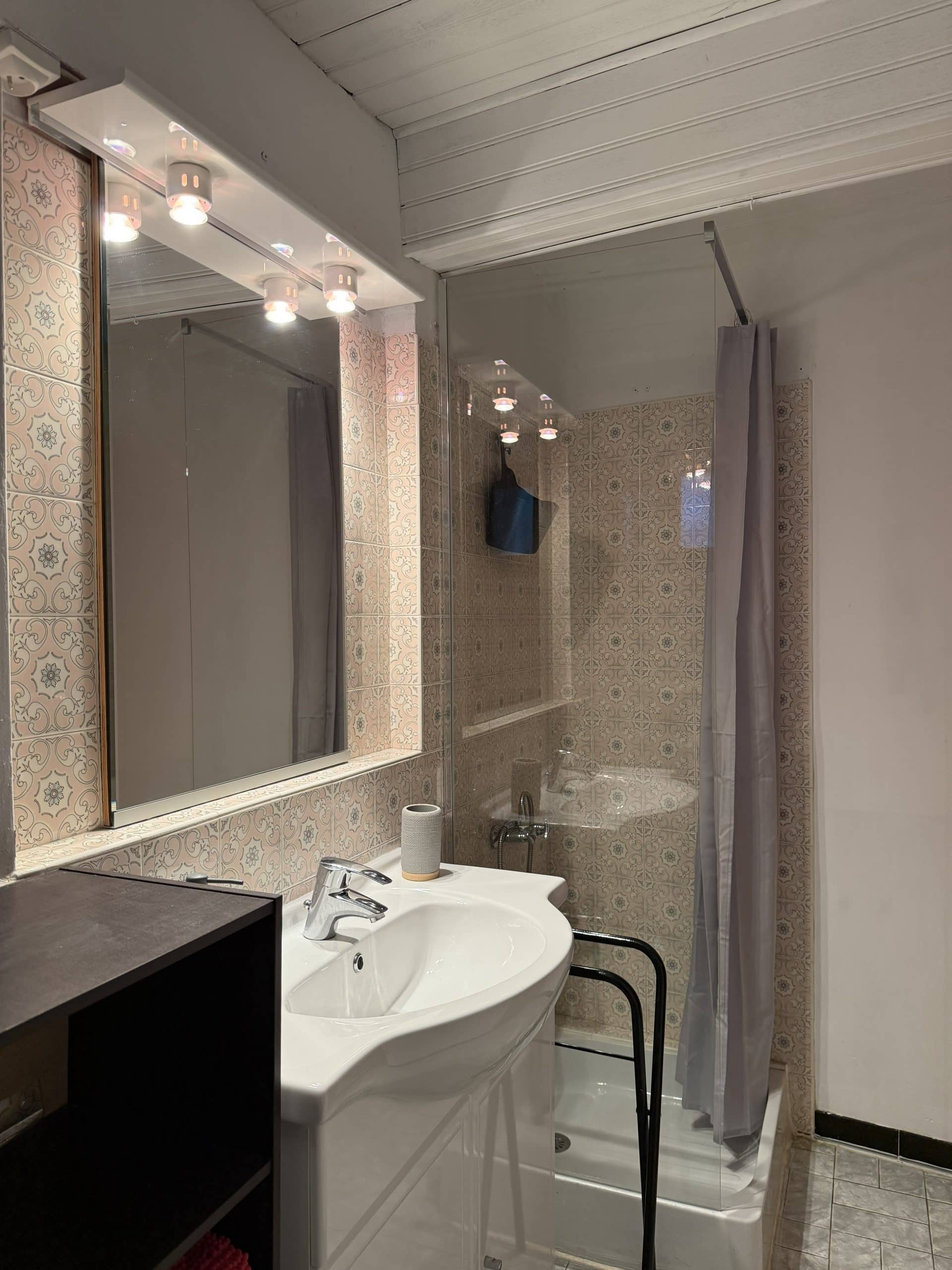 Salle de bain : douche, sèche-cheveux